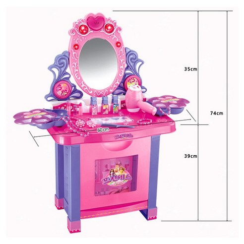 프린세스 화장놀이대는 3세 이상의 여아를 위한 제품으로, 아이들의 성장에 맞게 만들어졌습니다. 플라스틱 재질로 제작되어 내구성이 뛰어나며, 핑크 계열의 분홍색으로 아이들의 취향을 반영하였습니다. 이 제품의 가로길이는 60cm로, 아이들이 편하게 사용할 수 있도록 고려되었습니다.